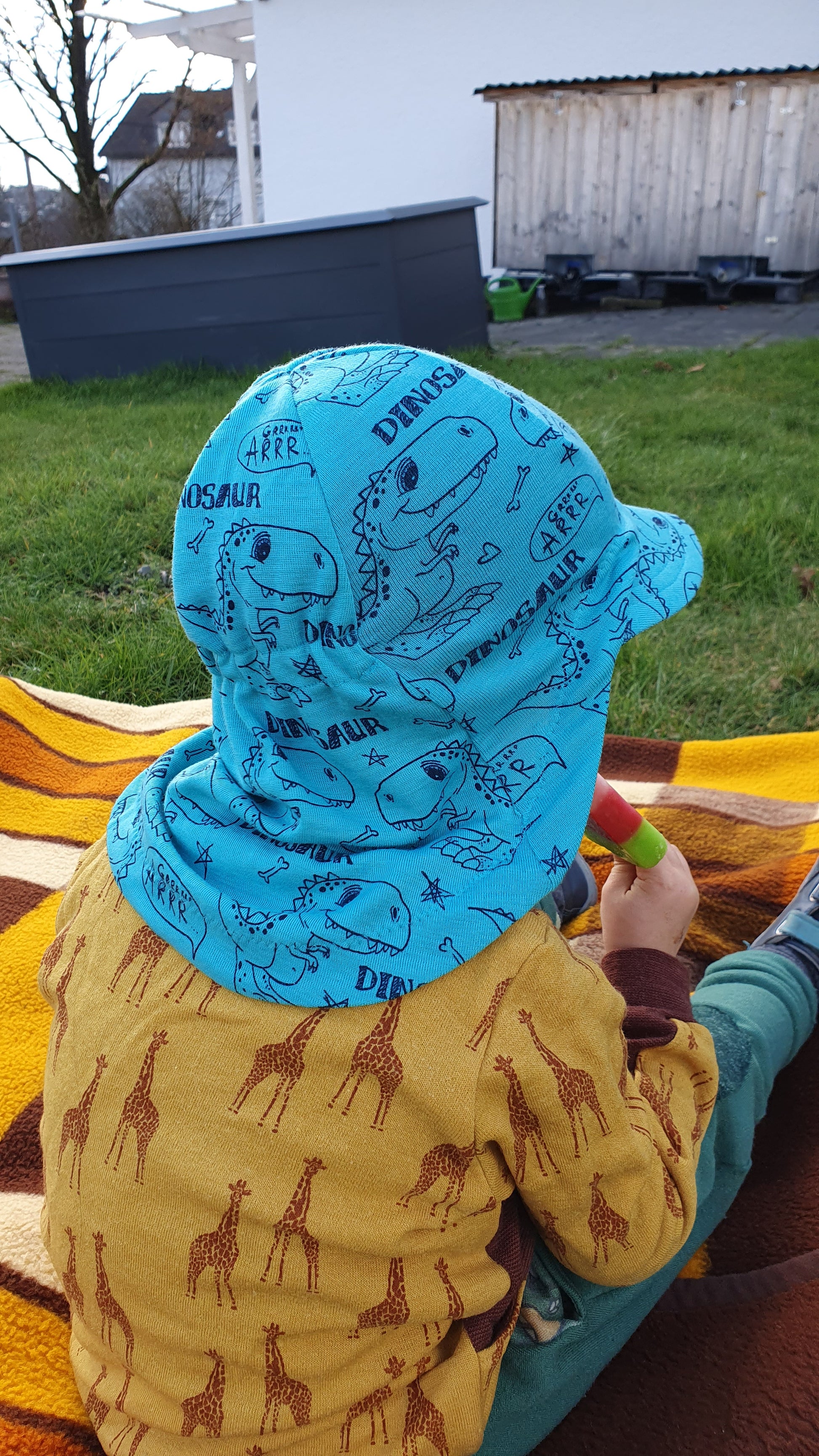 Ber der Add-On Version ist der Nackenschutz noch großzügiger gehalten und der Gummizug ist verdeckt auf der Innenseite angebracht. Er sitzt etwas höher am Hinterkopf als bei der Basic-Version, so dass der Nacken schön luftig frei liegt.